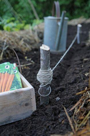 3. Maa haravoidaan tasaiseksi, ja sen jälkeen merkitään kylvörivit ja tehdään kylvövaot. Siemenpussiin on merkitty suositukset vakojen syvyydestä ja niiden väliin jäävästä etäisyydestä.