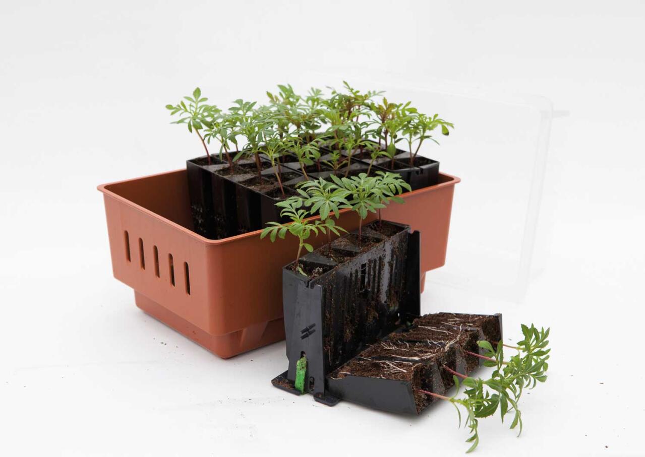 Sitä mukaa kun juuret kasvavat ulos kennojen tuuletusaukoista, niiden päät kuivuvat ja uudet juuret muodostuvat ylemmäs. Kennot voidaan avata keskeltä, mikä helpottaa niiden käsittelyä.