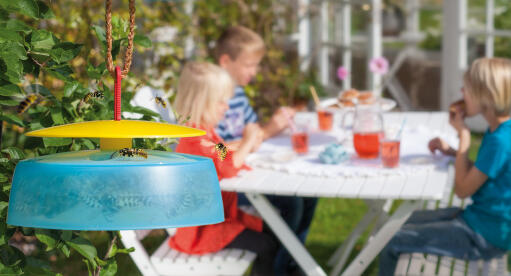 Käytännöllinen ulkoansa ampiaisille. Täytä ansa haluamallasi nesteellä, kuten mehulla tai kaljalla.