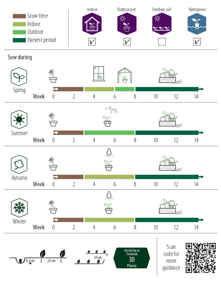 Tarkempaa tietoa kylvämisestä löytyy täältä tuotesivuilta, joille pääsee helposti pussiin merkityn QR-koodin avulla.