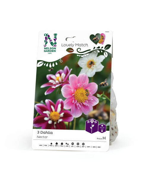 Kolme daaliaa, joita yhdistää kukkien tumma pinkki ja valkoinen väri sekä kaksinkertaiset terälehdet. Kukkiessa ne houkuttelevat mehiläisiä, kimalaisia ja perhosia. Matala kasvutapa sopii ruukkuun ja kukkapenkkiin. Upea myös leikkokukkana.