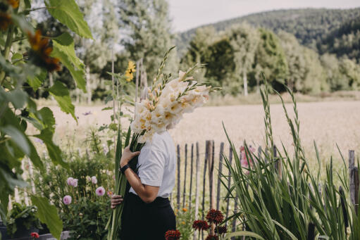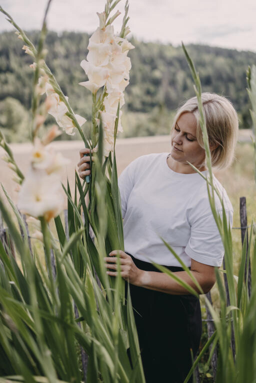 Ihana seos suurikukkaisia gladioluksia, jotka Cilla ja Lovisa ovat Fiddekullan puutarhassa tarkoin valinneet. Sopivat täydellisesti kukkapenkkiin, mielellään usean kukan ryhmänä. Poimi kimppuun, kun alimmainen kukka aukeaa.