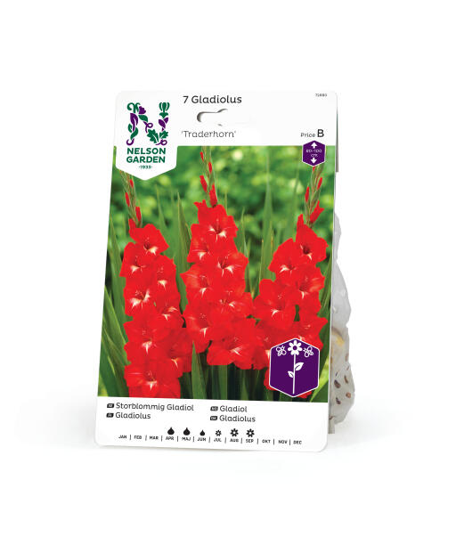 Suurikukkainen gladiolus, parasta laatua. Hohtavan punaiset tyylikkäät kukat korkeissa varsissa. Sopii penkkiin, tulisi istuttaa ryhmiksi. Sopii myös suureen ruukkuun ja varsinkin näyttäviin kimppuihin.