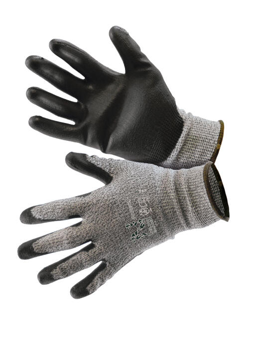 Kudottu PU-pinnoitettu viiltosuojakäsine. Suositellaan niihin puutarhatöihin, missä on viiltovaara. Mukavat kädessä, hyvä sormituntuma. Nylonia, lasikuitua ja HPPE-kuitua.