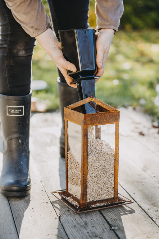 Kauha linnunruokintaan, jonka fiksun avaa/sulje-toiminnon ansiosta automaatin täyttäminen on helppoa. Sopii myös pieniaukkoiseen automaattiin. Polypropeenia (PP), musta, pituus n. 30 cm.