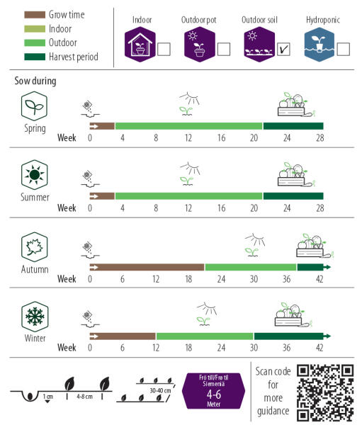 Tarkempaa tietoa kylvämisestä löytyy täältä tuotesivuilta, joille pääsee helposti pussiin merkityn QR-koodin avulla.