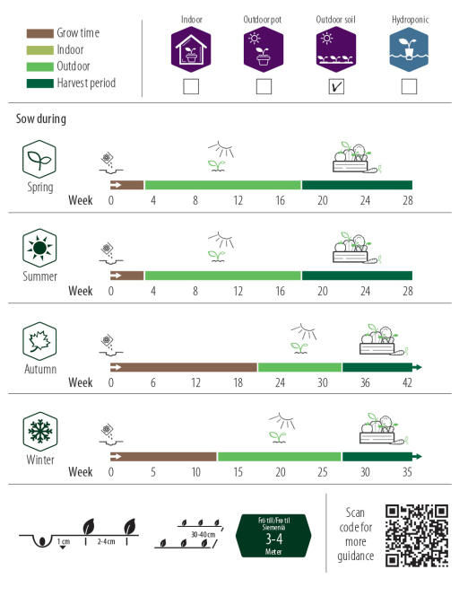 Tarkempaa tietoa kylvämisestä löytyy täältä tuotesivuilta, joille pääsee helposti pussiin merkityn QR-koodin avulla.