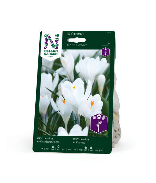 'Jeanne d'Arc' on kevätkrookus, jolla on suuret, kauniin valkoiset kukat. Kevätkrookuksella on kaikkein suurimmat kukat. Sopii hienosti kukkapenkkiin, pensastojen ja pensasaitojen reunustoille sekä puiden edustalle kevätauringon paisteeseen.
