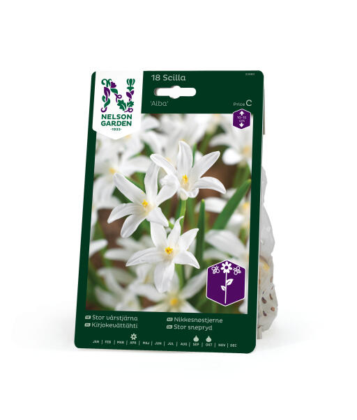 Suuri kirjokevättähti kuin tähti kevätauringossa kauniine valkoisine kukkineen. Tulisi istuttaa samaan paikkaan posliinihyasinttien ja idänsinililjojen kanssa. Näin voit luoda kukkamattoja, joissa on vaihtelevia sinisiä ja valkoisia sävyjä.