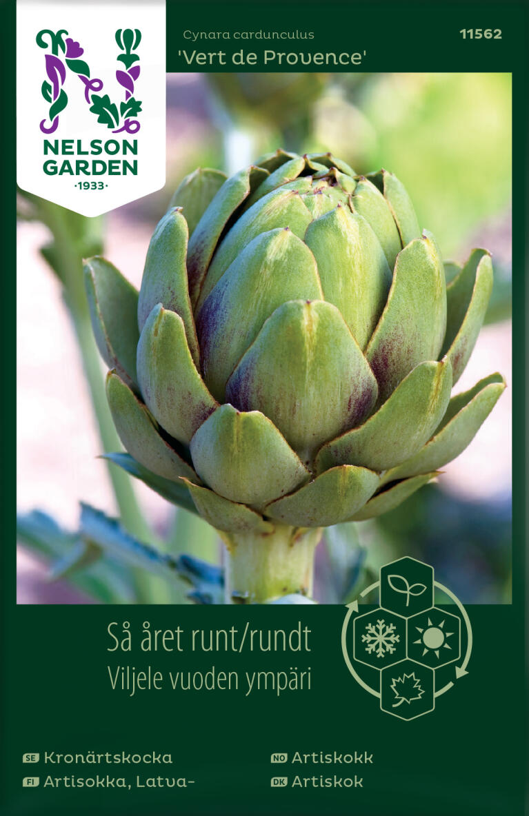Komea artisokka. Viljellään avomaalla tai ruukussa lämpimässä. Esikasvata sisällä kylvömullassa kasvivalon alla. Idätä huoneenlämmössä, siirrä viileämpään. Taimettumisen jälkeen kouli 1/ruukku lannoitettuun multaan. Aloita korjuu n. 6kk kylvöstä, vain nuput korjataan.