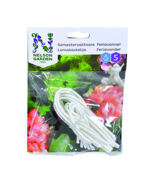 Oletko lähdössä lomalle? Unohtuuko kasvien kastelu helposti? Lomakastelija tuo helpotusta ruukkukasvien kasteluun. Aseta langan toinen pää ruukkukasvien multaan. Aseta toinen pää vesiastiaan (lasiin, ämpäriin, kulhoon tms.). Vesi kulkeutuu kastelijaa pitkin multaan. Näin kasvit pysyvät riittävän kosteina jopa useiden viikkojen ajan.