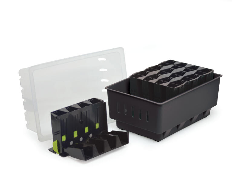 Kätevä pienoiskasvihuone, jossa viljelyä helpottava itsekastelujärjestelmä. Avattavat kennosarjat takaavat taimien hellävaraisen käsittelyn. Lev. 19,5cm, pit. 29cm, kork. 21cm.