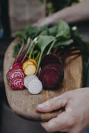 Värikäs sekoitus punajuurilajikkeita: keltaista, valkoista, punaista ja punavalkoraidallista. Liian aikaisin kylvettynä kukkii helposti, jos ne altistuvat kevään yöpakkasille.
