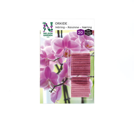 Kivennäisravinne orkideoille. Helppo käyttää. Puikko työnnetään multaan, jolloin ravinteita vapautuu jokaisella kastelukerralla kolmen kuukauden ajan. 20kpl/pakk. NPK 15-3-6,5+micro