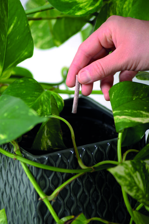 Kivennäisravinne. Helppo käyttää. Puikko työnnetään multaan, jolloin ravinteita vapautuu jokaisella kastelukerralla kolmen kuukauden ajan. NPK 14-3-7+micro