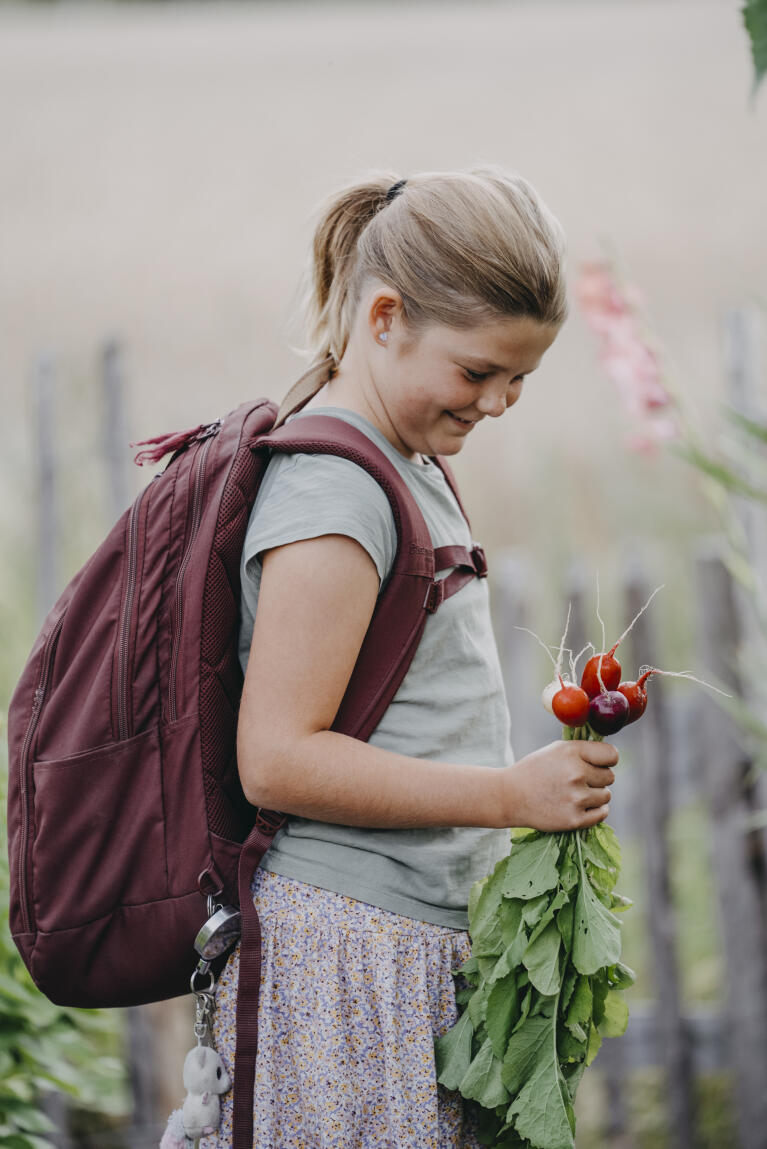 Sekoitus vaaleanpunaisia, keltaisia ja valkoisia retiisejä. Korjaa satoa vähitellen. Kylvä retiisiä muutaman viikon välein, niin saatavilla on aina tuoretta satoa. Peitä kasvuharsolla.