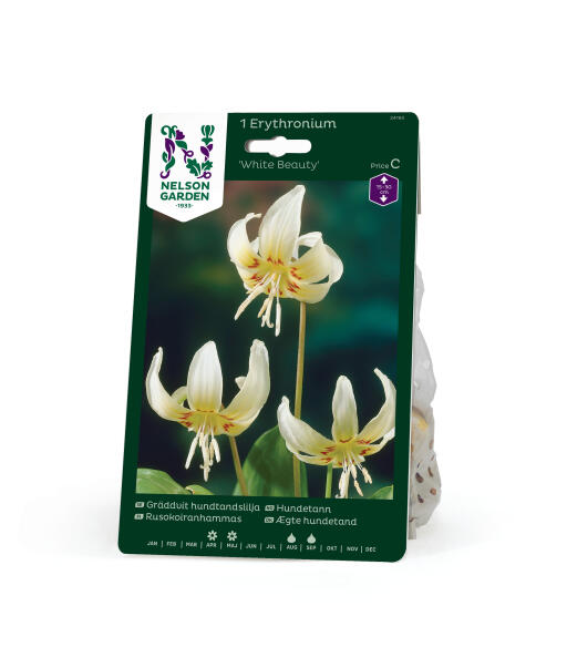 Koiranhammas - valkokukkainen lajike, jolla koristeelliset suonikkaat lehdet ja punertavat kukkavanat. Kuninkaallisen puutarhanhoitoyhdistyksen (RHS) palkitsema lajike! Nimensä Koiranhammas on saanut sipulin muodosta.