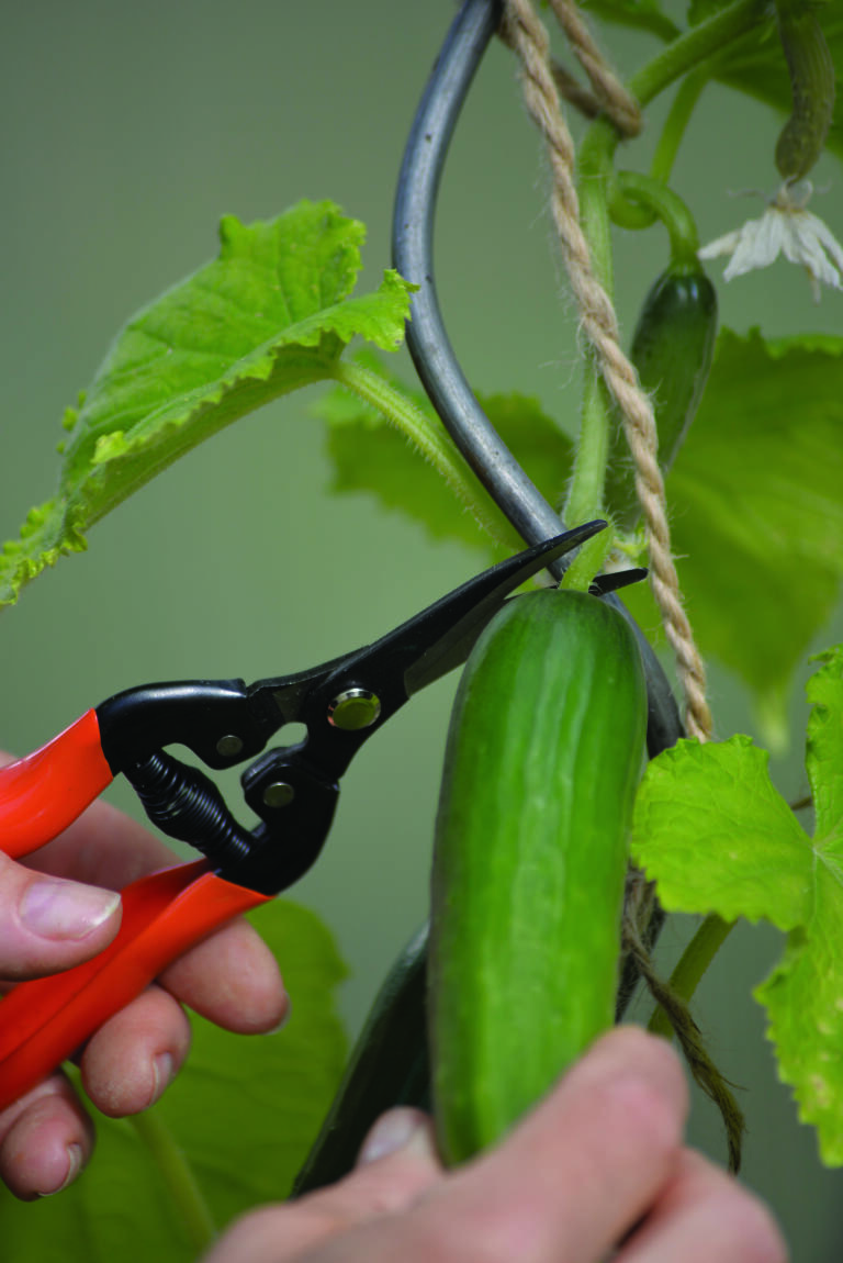 Curved Blade -sadonkorjuusakset auttavat puutarhan antimien keräämisessä. Taivutetun, ruostumattomasta teräksestä valmistetun terän ansiosta satoa pystyy käsittelemään helposti ja varovasti.