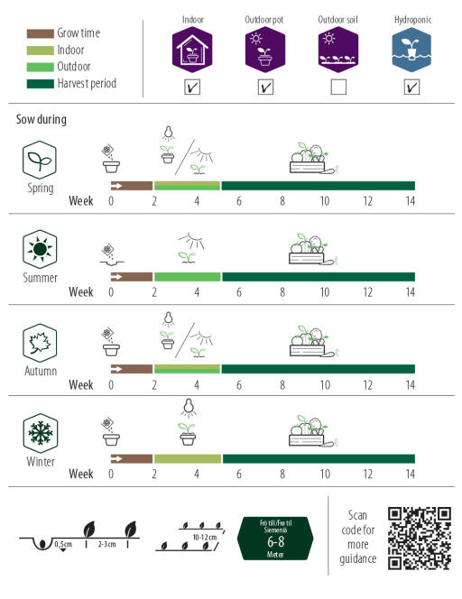 Tarkempaa tietoa kylvämisestä löytyy täältä tuotesivuilta, joille pääsee helposti pussiin merkityn QR-koodin avulla.