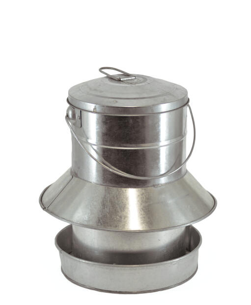 Tilava automaatti linnunsiemenille. Sinkittyä peltiä. Varustettu kehyksellä, joka suojaa ruokaa kosteudelta ja suurilta linnuilta. Täytetään yläpuolelta irrotettavan kannen kautta. Sanka ripustamista varten. Tilavuus peräti 9,5 l.