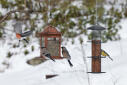 Tyylikäs siemenautomaatti, somistuselementti puutarhaan. Kiinnitysrengas ruuvataan irti, kun automaatti on tarkoitus täyttää. Istumapaikkoja ympärillä. Peltiä, seinät kestävää pleksiä.