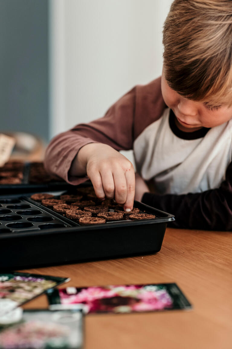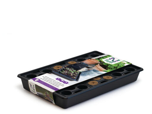 Taimikasvatuslaatikko ja kennostot voi täyttää mullalla tai kapseleilla. Helpottaa kylvöä, esikasvatusta ja koulintaa. Laatikko polypropeenia (PP, kierrätysmateriaalia), kennostot polystyreeniä (PS). Sis. 14 kylvökapselia kompostoitavaa kookoskuitua, turvetta ja ravinteita. 23 x 37 cm