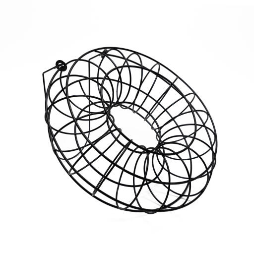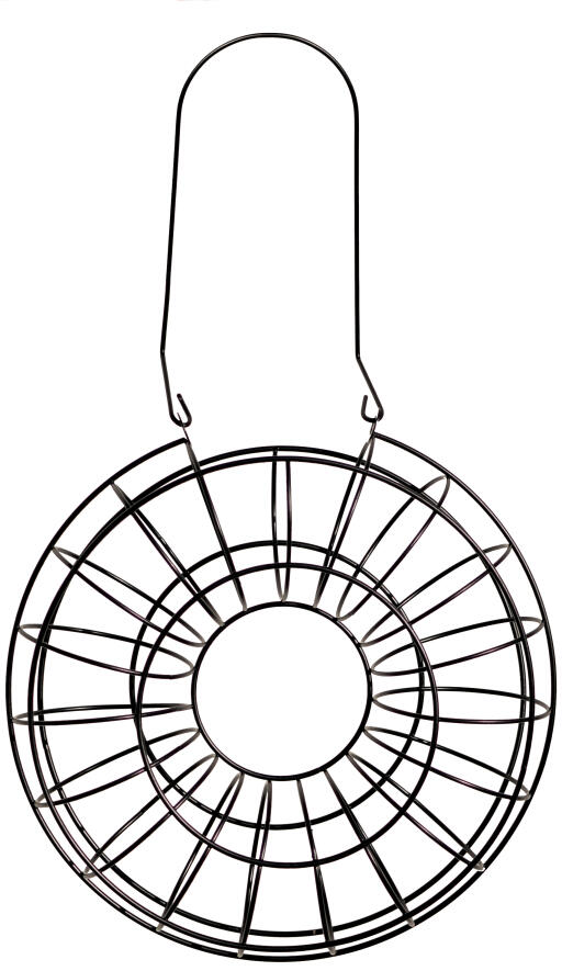 Kaunis ja kätevä linnunruoka-automaatti 90g talipalloille. Helppo täyttää ylhäällä olevasta reiästä. Sopii myös omenoille. Metallia. Ø24cm