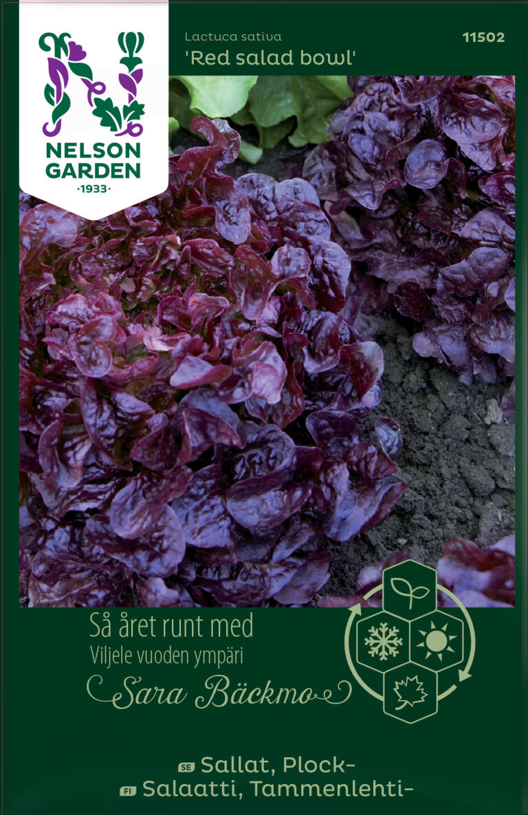 Kaunis punainen salaattilajike, jolla tammenlehtimäiset, poimuiset lehdet. Korjaa satoa vähitellen. Toista kylvö kahden viikon välein.