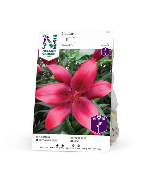 Häikäisevä kaunis uusi tummanpunainen lilja, punamustassa nielussa on mustia täpliä Kukat luovat kirkkaan hohtavan vaikutelman. Sopii penkkiin ja parhaiten ruukkuun.