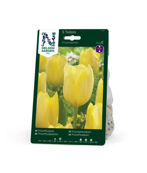 Kauniin muotoisella, viileän keltaisella Triumph-tulppaanilla on tulppaanityypille ominaiseen tapaan vankka varsi ja kestävä kukka. Erinomainen leikkokukka. Keltainen väri sopii monenlaisiin väriyhdistelmiin.