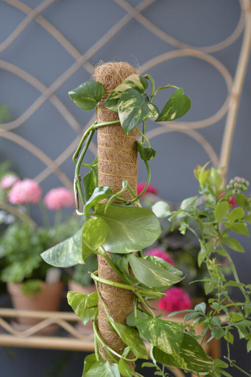 Luonnonmateriaalista valmistettu tuki, joka on kookoskuidulla päällystettyä puuta. Tyylikäs ja käytännöllinen tuki köynnöskasveille sisätiloihin, esim. jättipeikonlehdelle ja kultaköynnökselle.