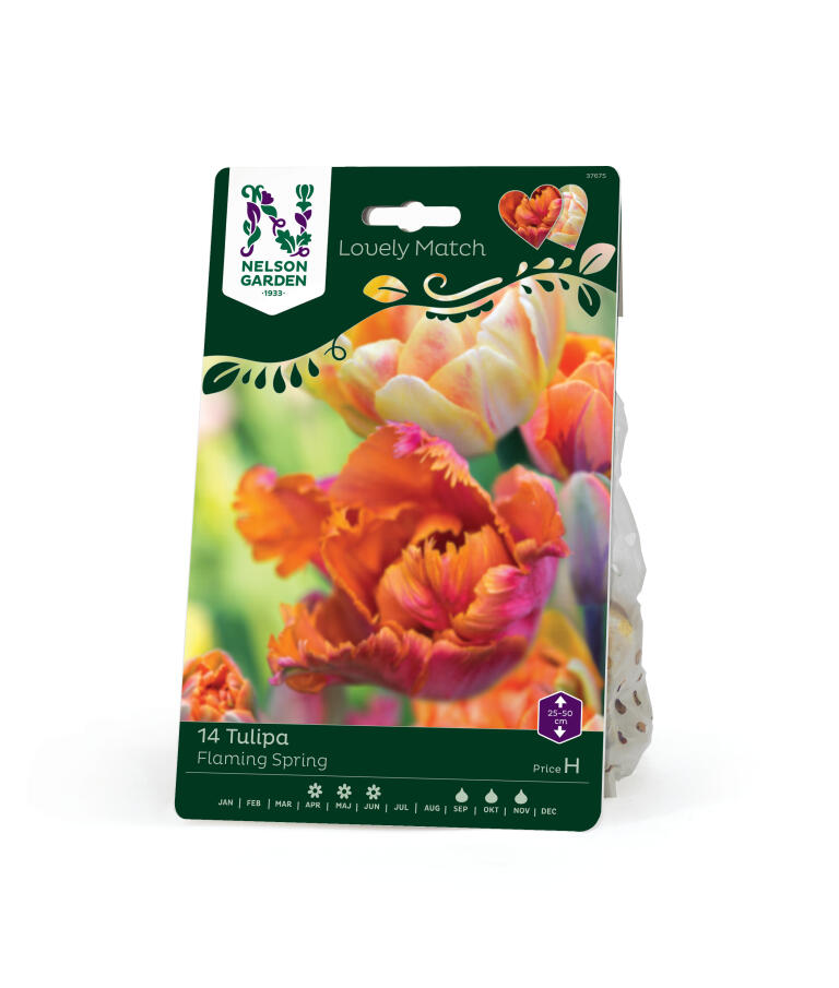 Liekehtivä tulppaanikimppu keltaisen, oranssin ja punaisen sävyissä. Harmoninen värien leikki jatkuu pitkään, kukat aukeavat eri aikoina ja jokainen lajike vaihtaa sävyään nupusta täyteen kukkaan. Kauniita ruukussa, hienoja kimpuissa.