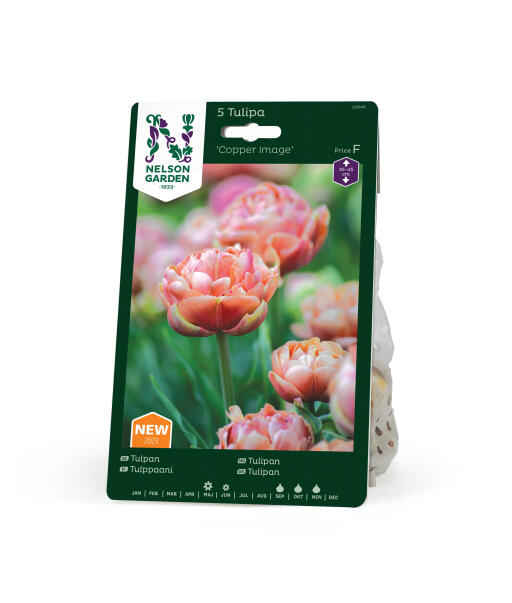 Muhkea, kerrottu tulppaani lähes kimmeltävässä kuparin sävyssä. Upea näky niin kukkapenkissä kuin ruukussakin.