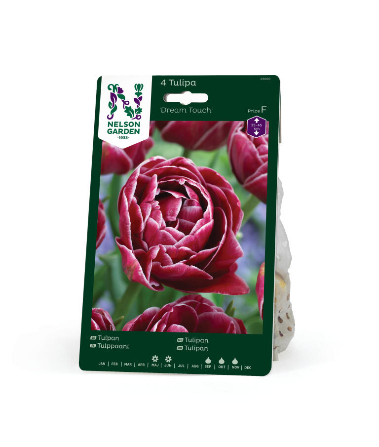 Tulppaani, jonka vadelmanpunaisen kukan reunoissa on häivähdys valkoista. Suuri kukka runsaine terälehtineen on melkeinpä kuin eksoottinen pioni. Yhdistele vaaleanpunaisten, purppuranpunaisten ja valkoisten kukkien kanssa.