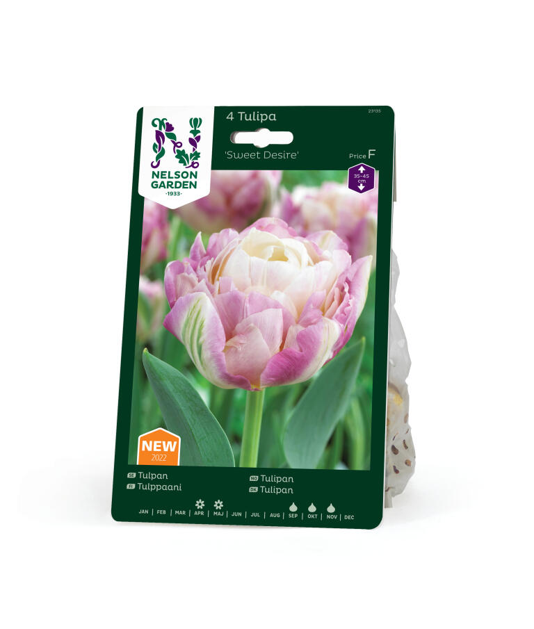 Suloinen tulppaani jonka kerroksittaisten terälehtien väri muuttuu vaaleanliilasta vaaleanpunaiseen kohti kermanvalkoista keskustaa. Uloimmissa terälehdissä on kauniita vihreitä juovia. Ihana ruukussa, mutta sopii myös kukkapenkkiin ja leikkokukaksi.