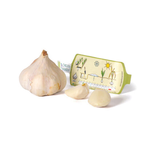 Luomuviljelty valkosipuli. Aikainen, viileää kestävä ja luotettava lajike, jonka suurissa kynsissä on täyteläinen maku. 8-14 kpl/sipuli. Kerää satoa toukokuussa ja käytä purjon tapaan tai elokuussa perinteiseen tapaan.